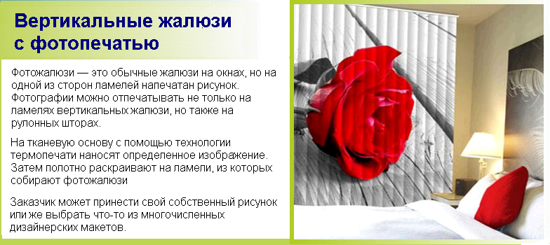 Фотопечать возможно нанести на жалюзи вертикального типа и рулонного типа.